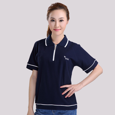 產(chǎn)品款式:半袖翻領門襟拉鏈T恤