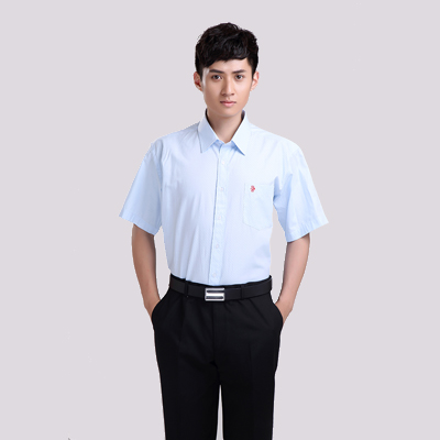 產(chǎn)品名稱:男式職業(yè)裝定做-藍(lán)色條紋短袖襯衣