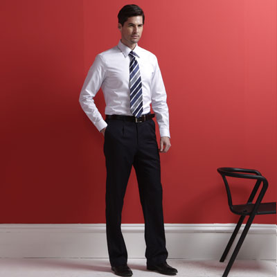 產(chǎn)品名稱:男士白色襯衫黑色西褲商務(wù)套裝