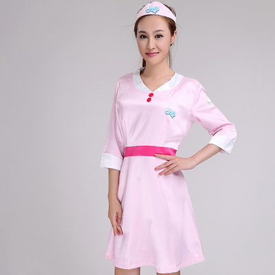 產(chǎn)品名稱:中袖粉色連衣裙式QQ星促銷服款式