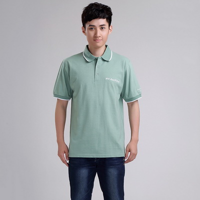 產(chǎn)品款式:淺綠色翻領刺繡短袖廣告衫定制