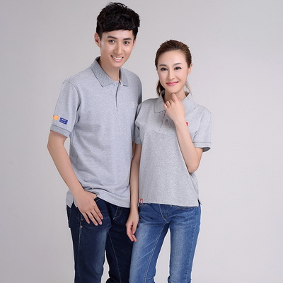 產(chǎn)品款式:中灰色短袖翻領(lǐng)男女T恤廣告衫