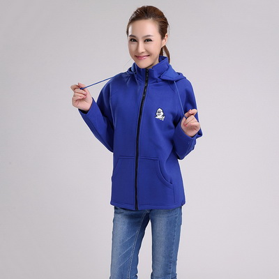 產(chǎn)品款式:深藍色貼兜連帽女款衛(wèi)衣外套