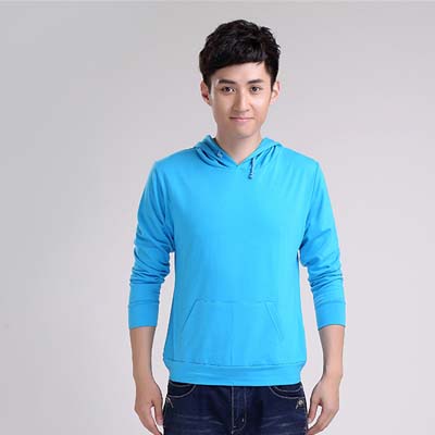 產(chǎn)品款式:藍色前身貼斗連帽套頭衛(wèi)衣批發(fā)