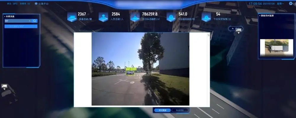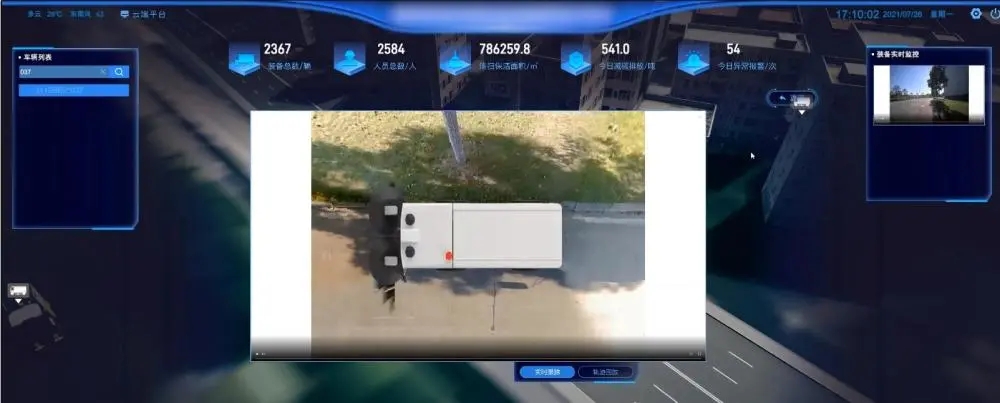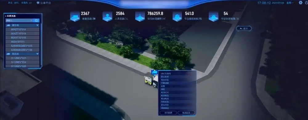 實時接入環衛車輛多項數據,環衛車輛分布狀態,在線離線等狀態一目了然