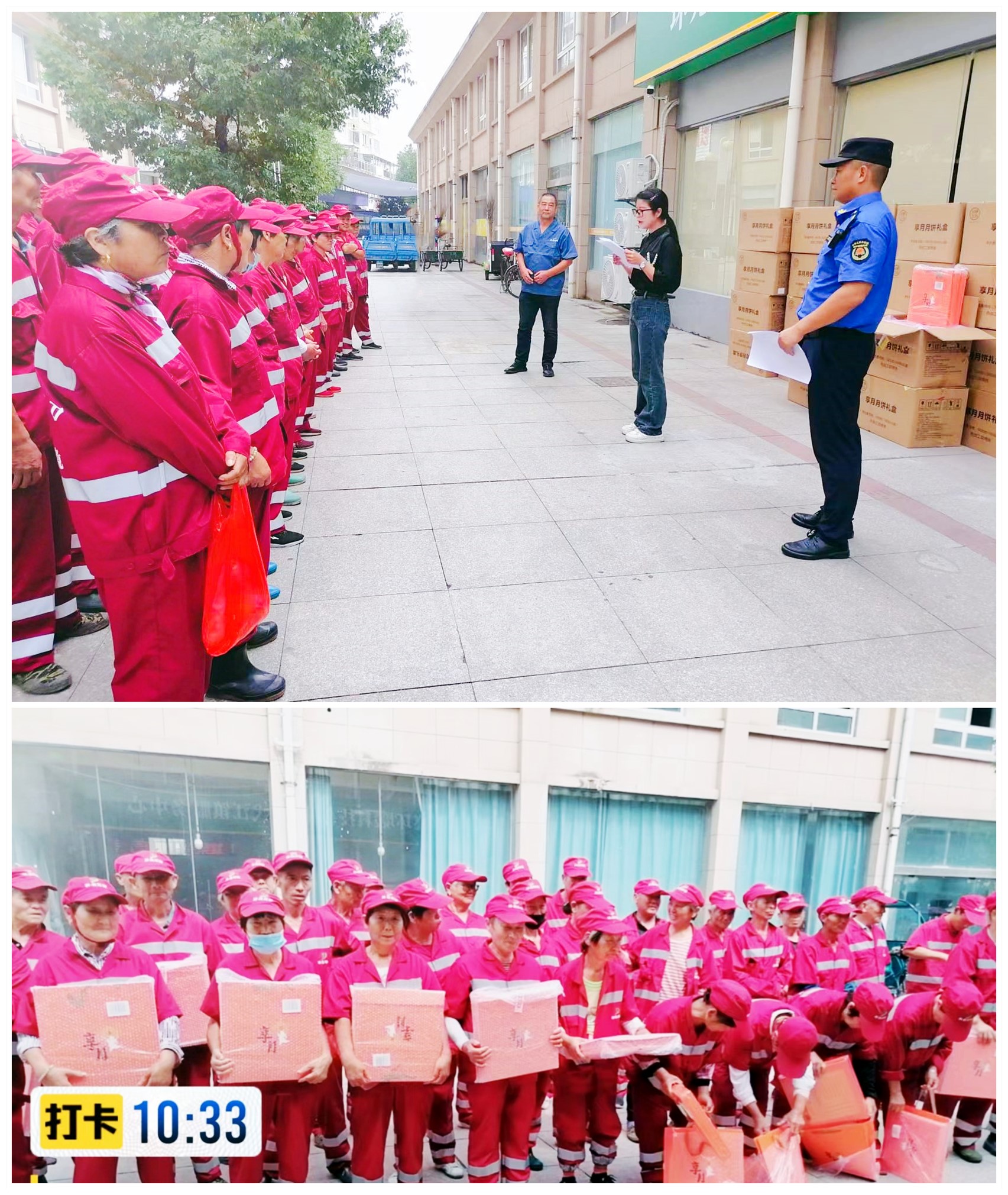 公司工會代表及各項目負責人向辛勤勞動和無私奉獻的一線環衛工表示衷心的感謝,對他們“舍小家、為大家”的堅守與付出給予高度的贊揚,并送上月餅、大米、生活用品等節日慰問品。同時,叮囑大家在工作中嚴格遵守公司各項規章制度,繼續以昂揚向上的精神狀態,攻堅克難,團結一心,做好自身安全防護,在保證安全的基礎上高質量完成保潔任務。
