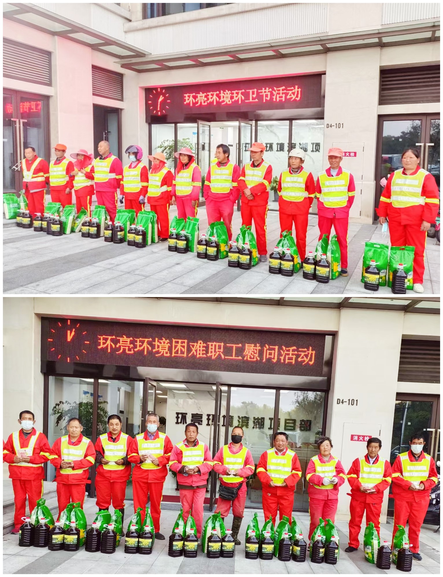 值此環(huán)衛(wèi)節(jié)到來之際,公司為環(huán)衛(wèi)工人們送去精心準(zhǔn)備的米、油等節(jié)日慰問品,以此感謝環(huán)衛(wèi)工人為環(huán)衛(wèi)事業(yè)做出的貢獻(xiàn),同時(shí)開展困難幫扶活動(dòng),為家庭經(jīng)濟(jì)較為困難的環(huán)衛(wèi)工人發(fā)放現(xiàn)金,希望能夠?yàn)樗麄儨p輕一點(diǎn)家庭重?fù)?dān)。