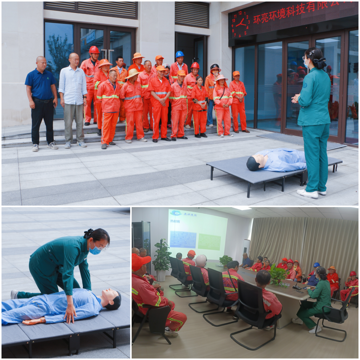 在 “安全生產(chǎn)月” 的濃厚氛圍中,為切實(shí)保障一線環(huán)衛(wèi)工人及路面管理人員的身體健康與作業(yè)安全,6 月 24 日,濱湖項(xiàng)目部聯(lián)合安徽中科庚玖醫(yī)院,開展了一場(chǎng)干貨滿滿的高溫預(yù)防培訓(xùn)及實(shí)操演練活動(dòng)。此次活動(dòng)作為項(xiàng)目安全月系列活動(dòng)的重要一環(huán),從知識(shí)科普、技能實(shí)操到健康關(guān)懷多維度發(fā)力,為高溫下堅(jiān)守崗位的勞動(dòng)者撐起 “安全傘”。